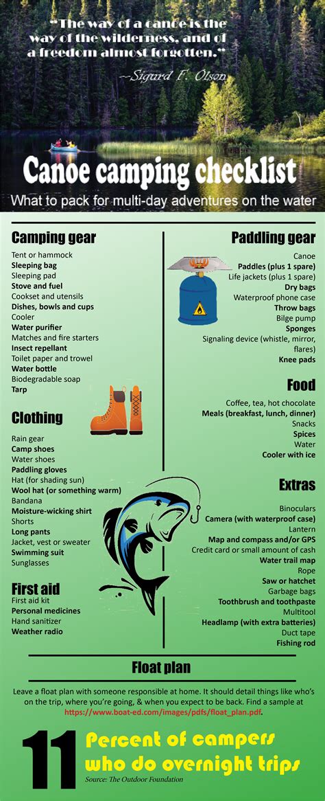 In conclusion, a canoe checklist is an essential tool for any canoe trip. It helps you stay organized, ensures that you have all the necessary equipment and supplies, and provides peace of mind. By using a checklist, you can focus on enjoying your time on the water and making memories that will last a lifetime.